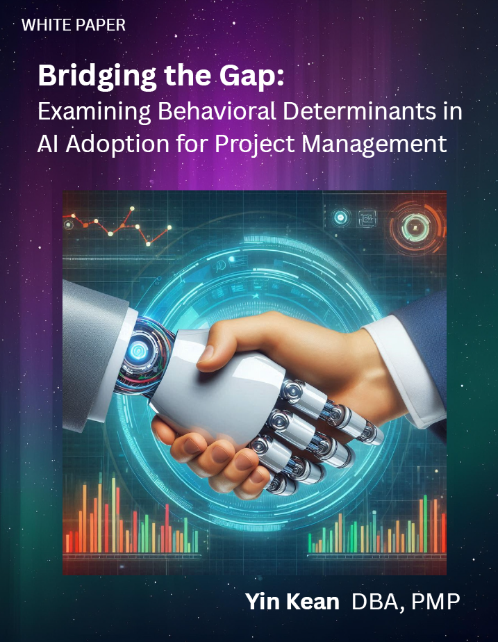 The white paper is based on doctoral research at the National University (U.S.) which is published in the thesis "Bridging the Gap: Examining Behaviourial Determinants in AI Adoption for Project Managent" by Yin Kean.