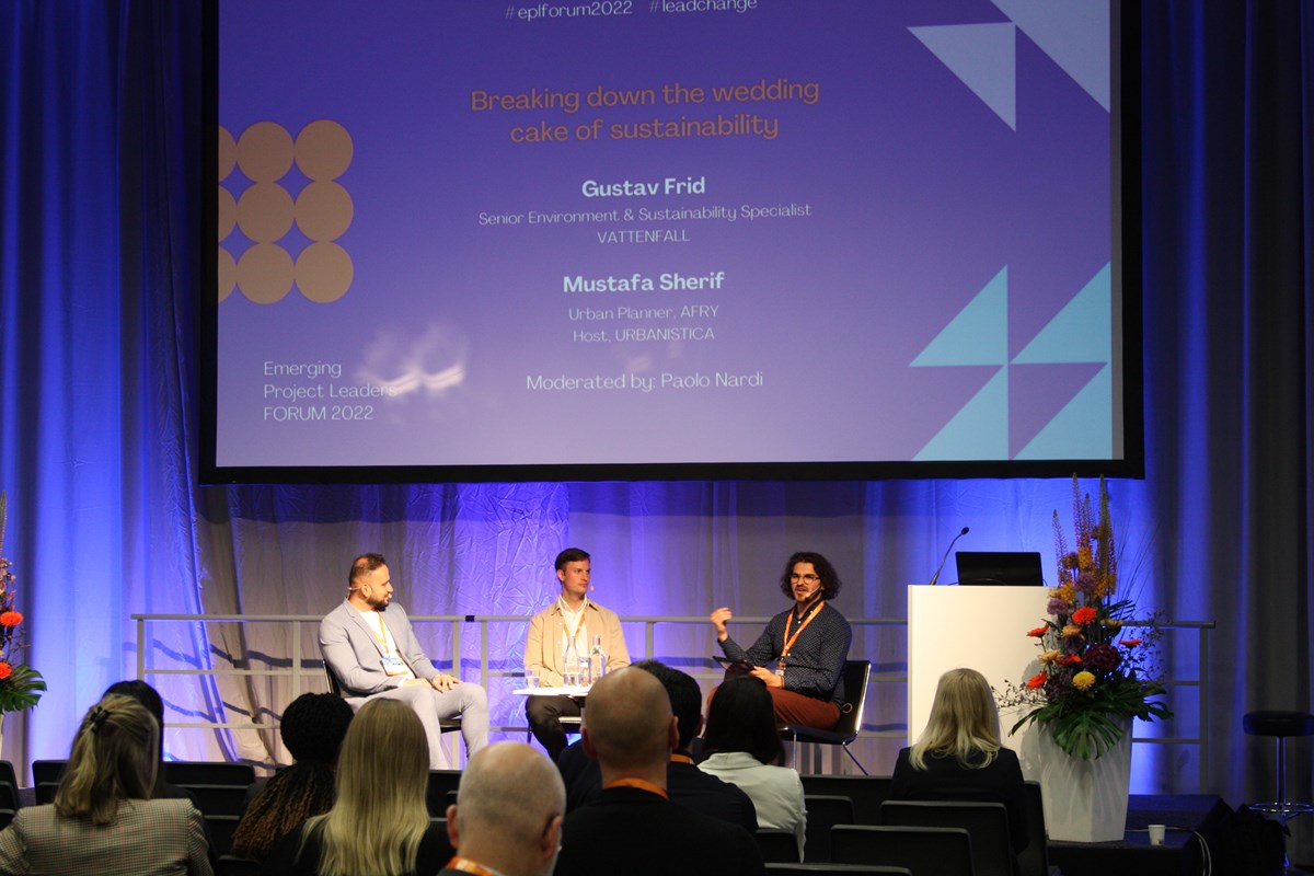 Under 35 Changemaker Awards 2022 winners Mustafa Sherif (left) and Gustav Frid (middle) discussing the importance of sustainable projects.