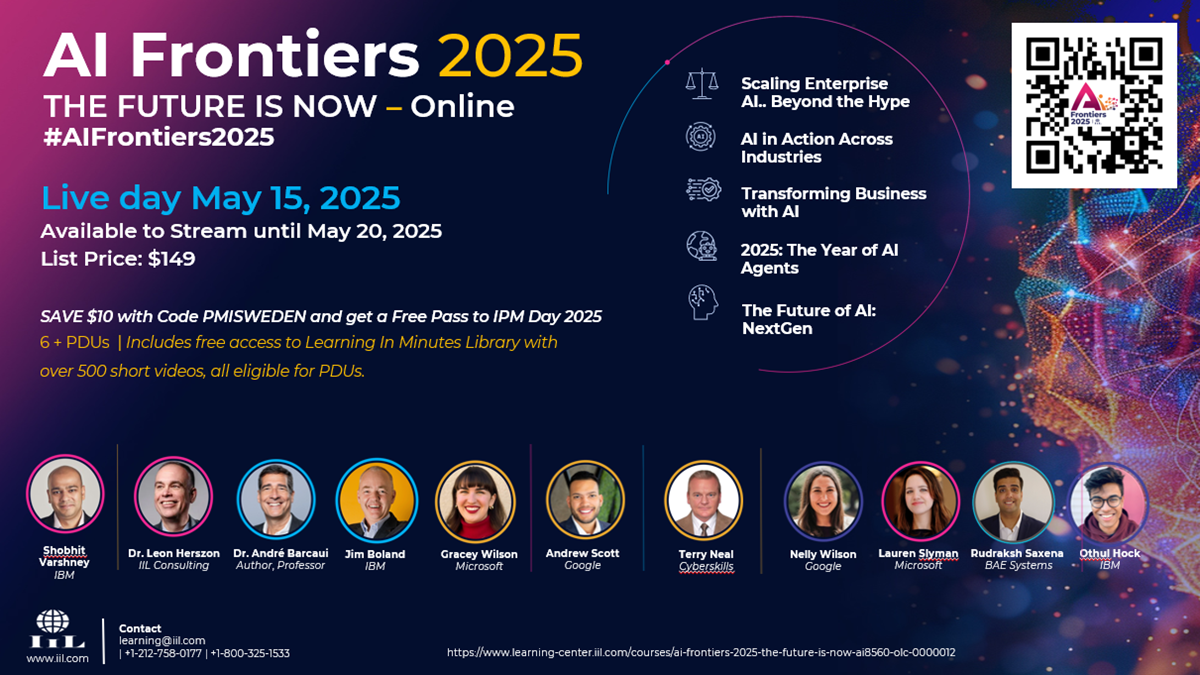 AI Frontiers 2025 – One-Day Online Conference with IIL | May 15 | Save $10 with PMI Sweden