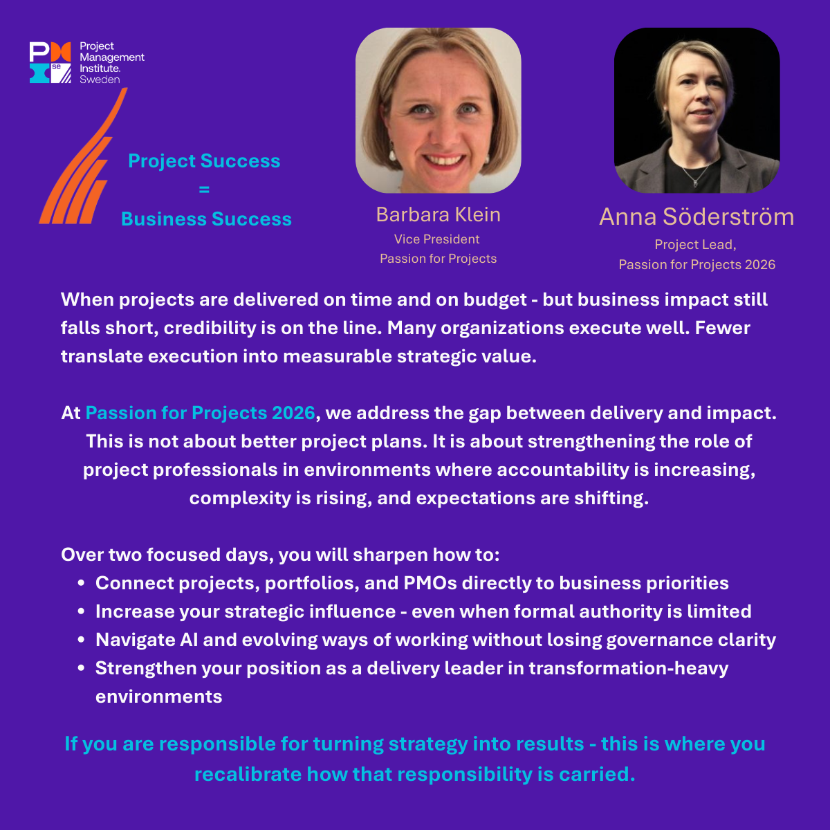 Over two focused days, you’ll engage with global research, real-world practices, and leaders who bridge project excellence with measurable business impact.